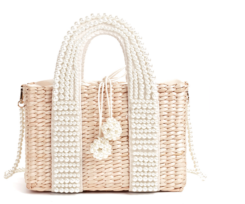 Home - New pearl handbag pearl detail straps straw tote woven bag boho chic bag haute hippie natural handbag