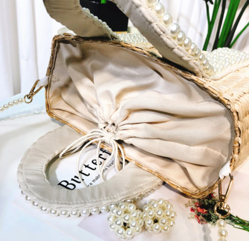 New pearl handbag pearl detail straps straw tote woven bag boho chic bag haute hippie natural handbag