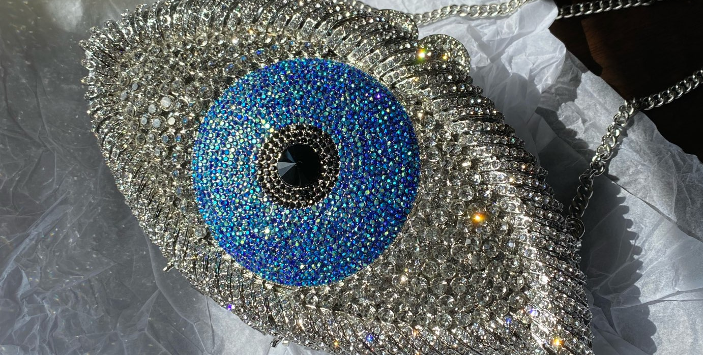 New Evil Eye Design Crystal Clutch Wearable Art Work