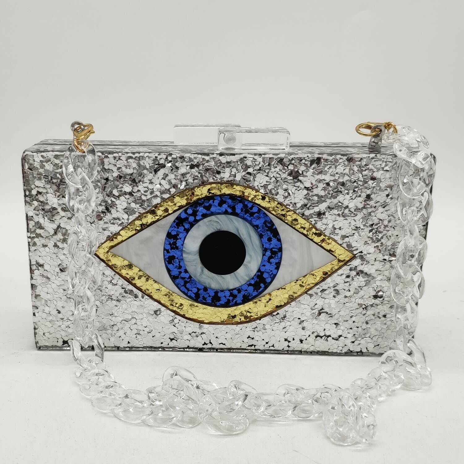 Evil Eyes Glitter Women Acrylic Box Clutch Evening Bags Ladies Party Prom Chain Shoulder Bag Cocktail Handbags