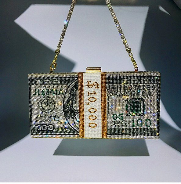 New Crystal Money Clutch Pink Crystal Clutch Stack of Cash