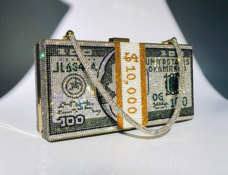 Money Clutch Smal Crystal Handbag Gray Crystal Money Clutch Stack Of Cash Clutch