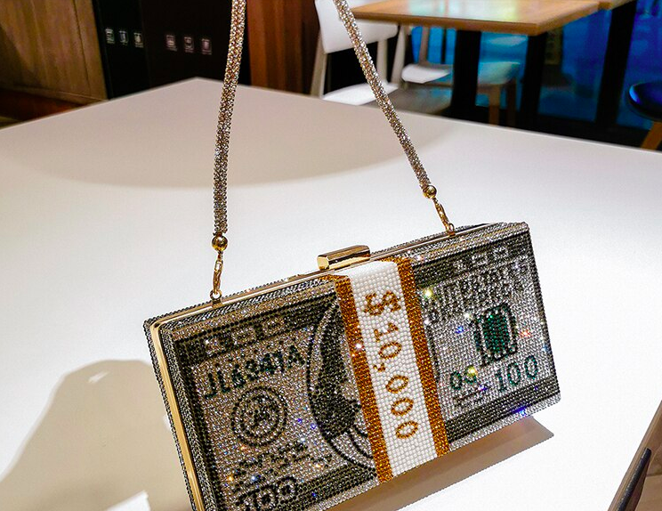 Home - Money Clutch Smal Crystal Handbag Gray Crystal Money Clutch Stack Of Cash Clutch