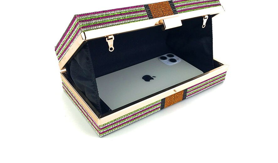 A stunning new bag perfect for handbag enthusiasts. The perfect addition to your handbag collection. A carefully created small evening bag . A small crystal bag in a gorgeous stack of cash money design. Whimsical and mystical a truly stunning piece of wearable art. . Made with attention to detail and carefully . Perfect for weddings, party's, Vegas fourth of July ect. . please carefully review the measurements of the bag so you are aware of the size. Fits cell phone. Includes strap.