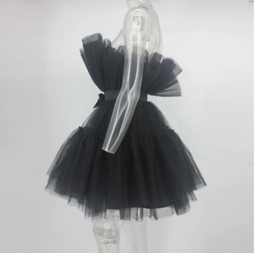 Black lush tulle dress sleevless mesh party dress sexy tulle birthday dress tutu