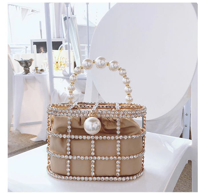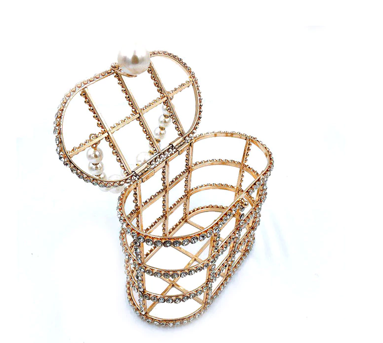 Gold Crystal Pearl Clutch Crystal Cage Handbag Crystal Wedding Purse Diamond