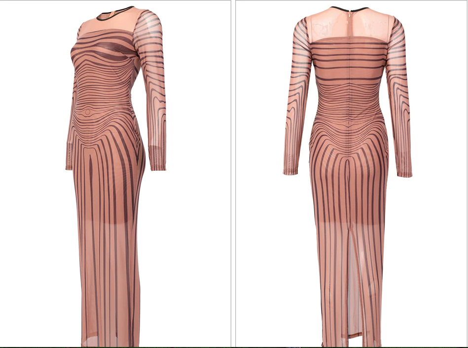 Kim Kardashian Style Optical Illusion Dress Long sleeve Bodycon Dress Sheer Mesh Party Dress Birthday Dress Club Dress Stretch vegas Dress