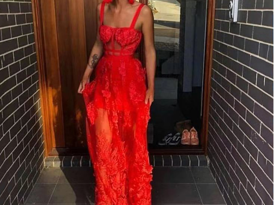 New Red Lace Evening Dress