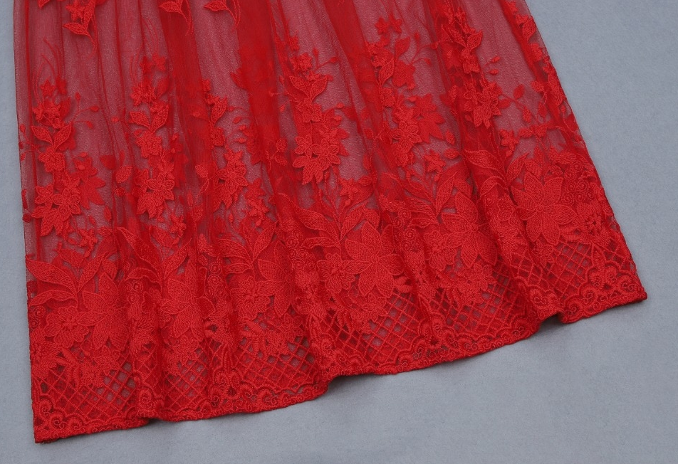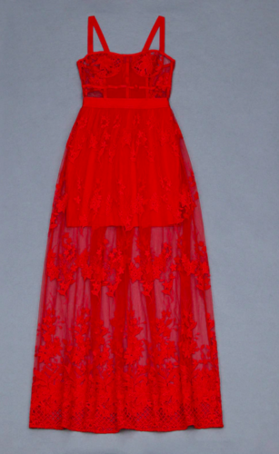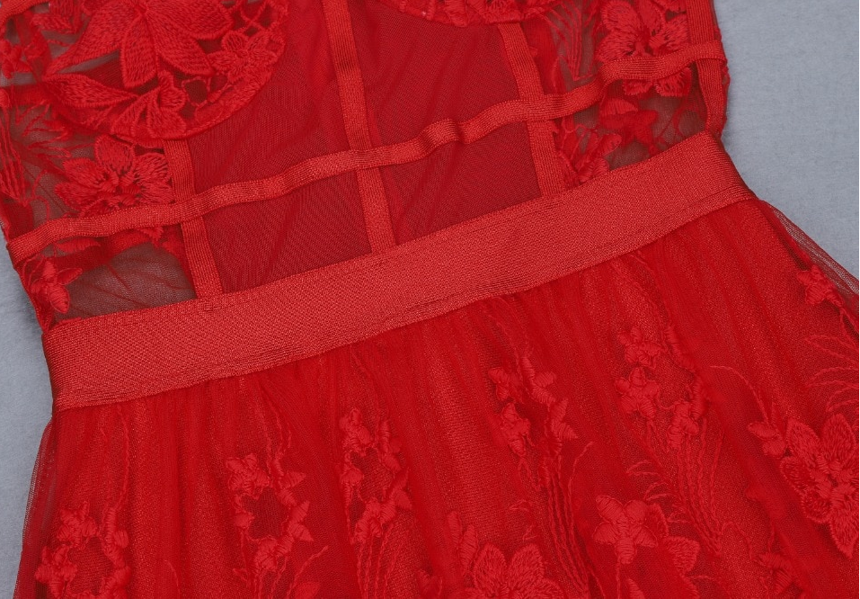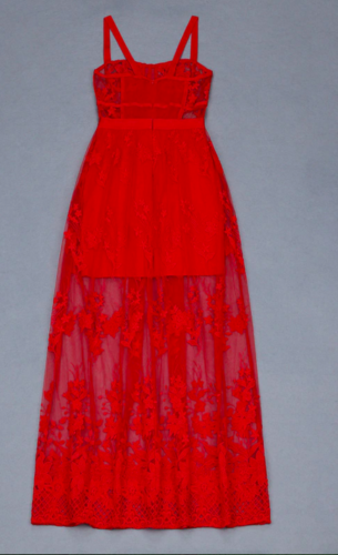 Red lace sheer bandage dress red elegant evening dress red maxi cocktail dress