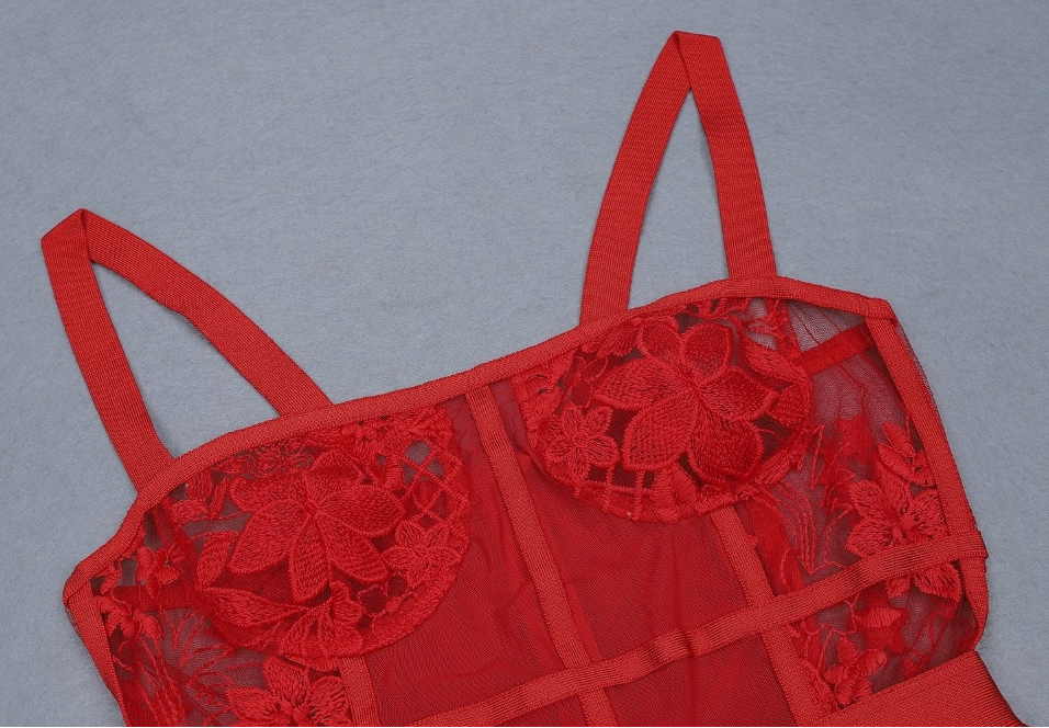 Home - Red lace sheer bandage dress red elegant evening dress red maxi cocktail dress