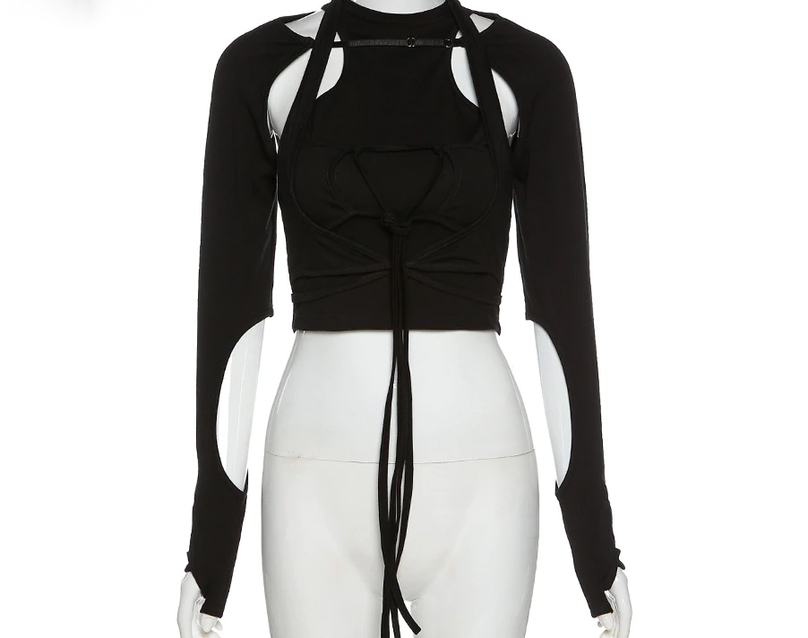 Chic Rocker Cotton Cut Out Top Long Sleeve 2 Piece Top Gothic Chic Top Punk Look
