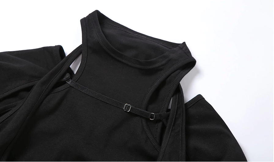 Home - Chic Rocker Cotton Cut Out Top Long Sleeve 2 Piece Top Gothic Chic Top Punk Look
