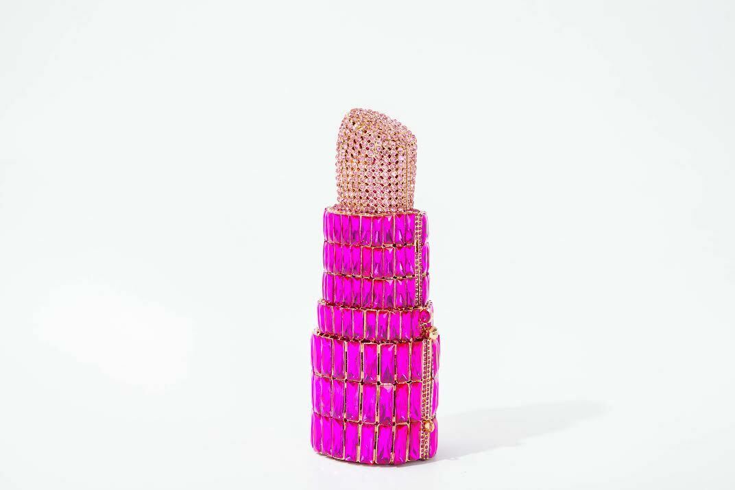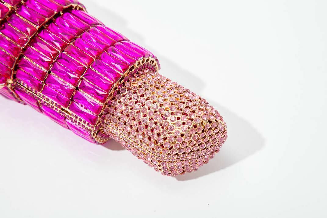 Bling Crystal Clutch Pink Crystal Lipstick Clutch Wedding Purse Rhinestone Bag