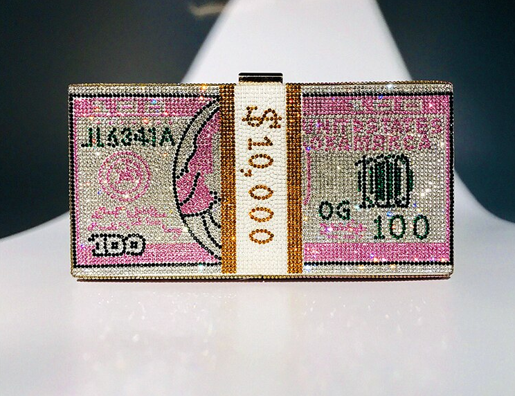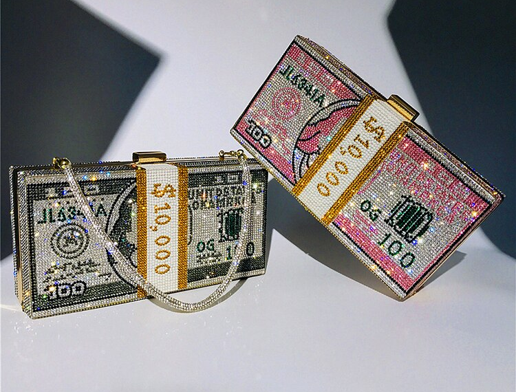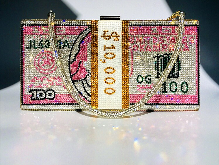 New Crystal Money Clutch Pink Crystal Clutch Stack of Cash
